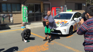春の強風が吹き荒れる中、気仙沼二郎選手のご挨拶や、のはしたろう選手の担当ドライバー(吉田雄明)への気合い注入ビンタなどが行われ、式を大いに盛り上げてくださいました‼